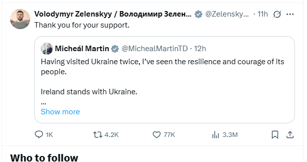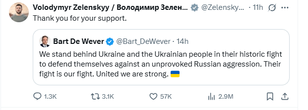 Zelenskyy's timeline on X was filled with messages of support from European allies and other countries from across the world. His response to all the messages was Thank you for your support.