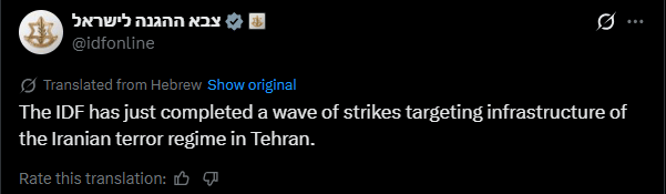 Israel Says ‘Wave of Strikes’ On Tehran Completed