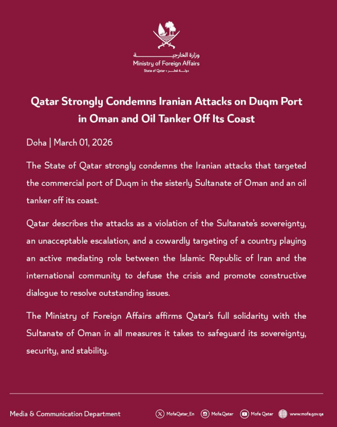 Meanwhile, UAE state news agency WAM confirmed that shrapnel from an Iranian missile attack on the capital killed one person, marking the first known fatality since Iran launched its retaliatory strikes in response to the joint US-Israel campaign targeting the Islamic Republic.
