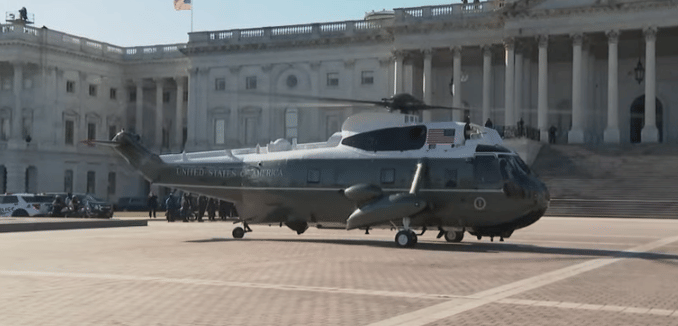 Ex-US President Joe Biden and former first lady Jill Biden exit U.S Capitol Hill in chopper.