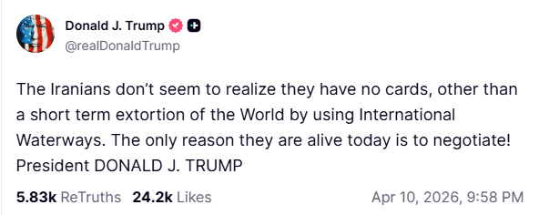 'They Are Only Alive To Negotiate': Few Hours Before Peace Talks, Trump Threatens Iran Again