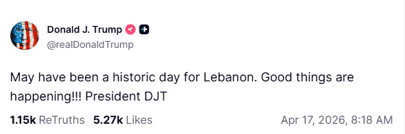 Trump Calls Israel-Lebanon Ceasefire ‘Very Exciting’ Opportunity