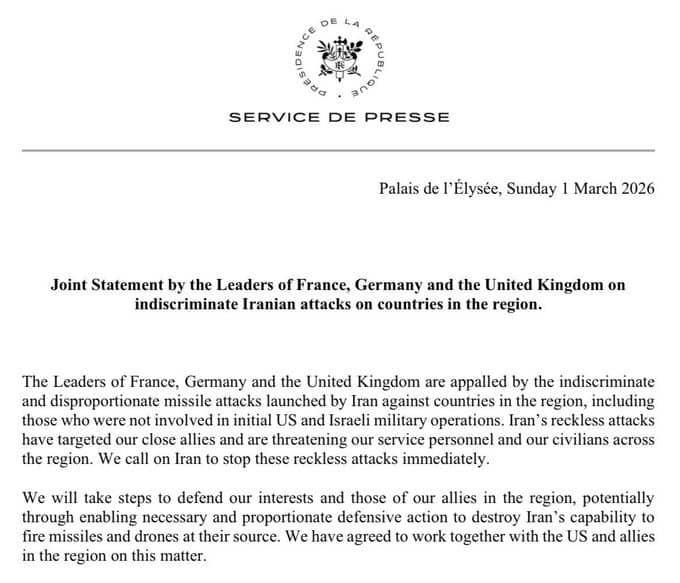 UK, France, Germany Vow Defensive Action Against Iran's Missile, Drone Strikes