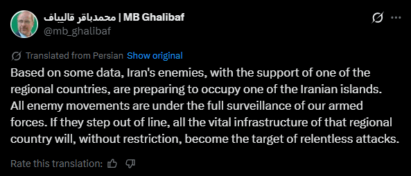 Iran's Foes Planning to Occupy Our Island: Parliament Speaker Ghalibaf