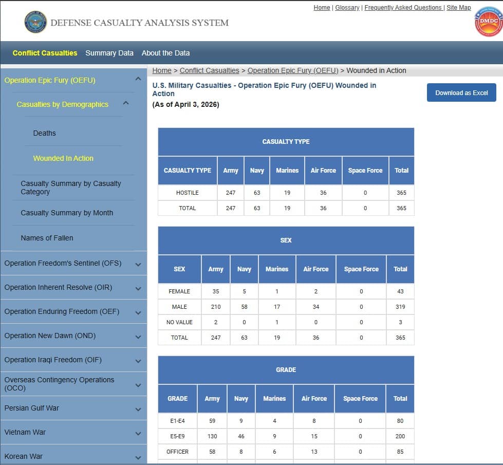 365 Service Members Wounded Since Start of Operation Epic Fury