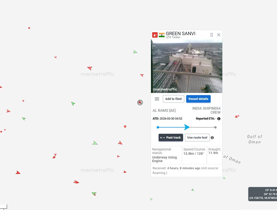India-flagged LPG tanker Green Sanvi crosses Strait of Hormuz