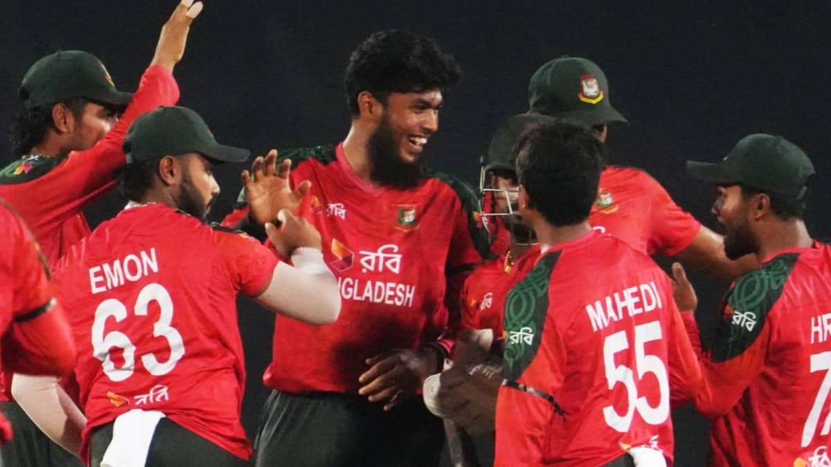 Shoriful Islam led the Bangladesh bowling attack with his three-wicket haul in his four-over spell, and gave just 17 runs. Mahedi Hasan and Tanzim Hasan Sakib also picked up two wickets each in their respective spell.