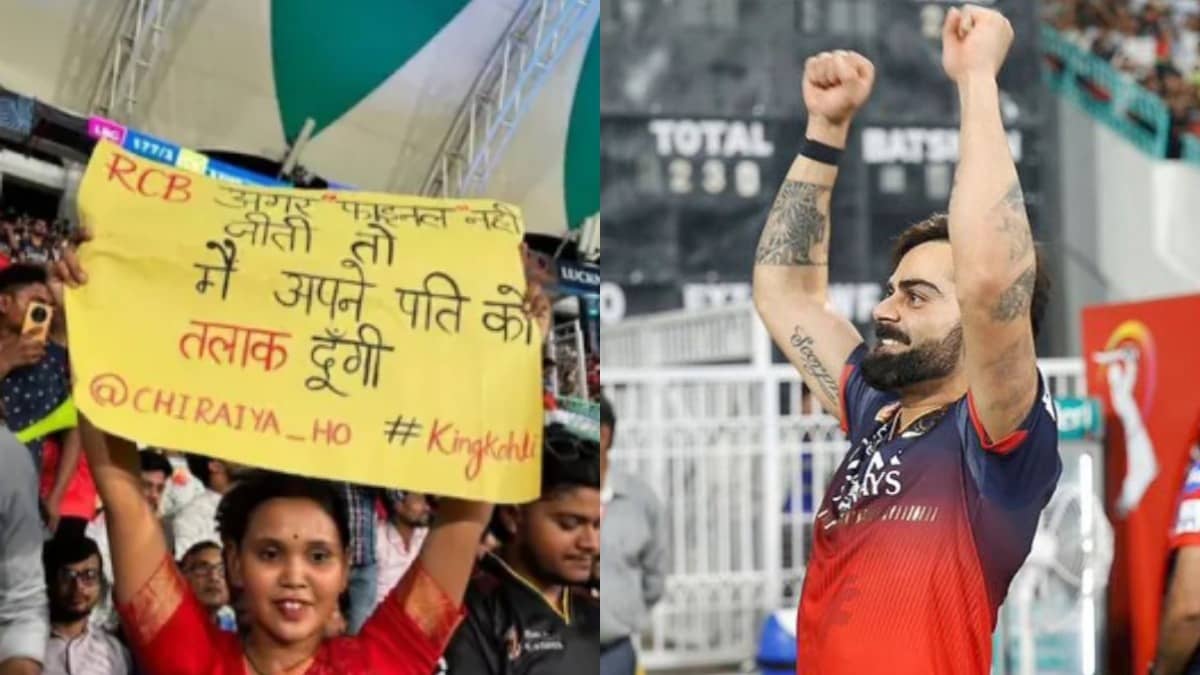 Now that the team has reached the final, a woman was spotted holding a placard in the stadium where she vowed to divorce her husband if RCB do not break the title drought by winning the title this year. Here is the picture that instantly went viral after the RCB win.