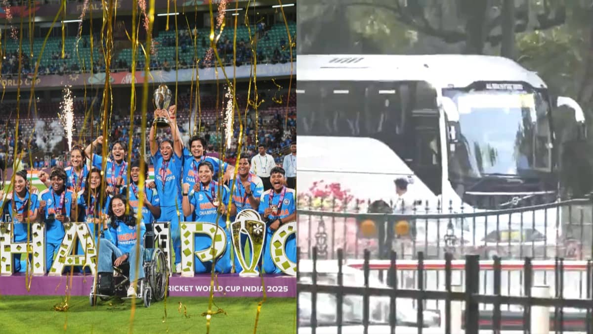 A video footage shared by ANI shows the India Women's team bus arriving at PM Narendra Modi's residence at 7, Lok Kalyan Marg.