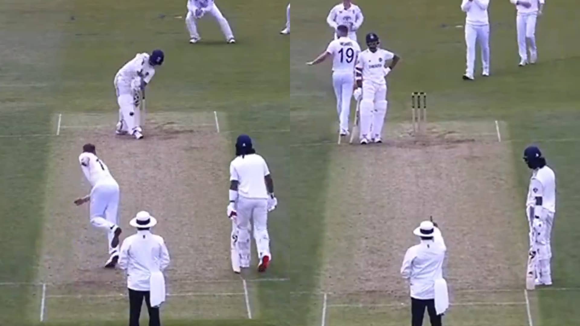The moment happened in the fifth ball of the seventh over after the England Lions opted to field first. Chris Woakes swung the ball towards the Jaiswal, who tried to flick the ball but missed as it crashed into his pad. Jaiswal missed the ball due to it's swing, and the bowling all-rounder made a loud appeal for an LBW. The umpire's fingers instantly went up to declare it a valid dismissal. Jaiswal was declared out after he scored 17 runs off 26 balls, which also included two boundaries.
