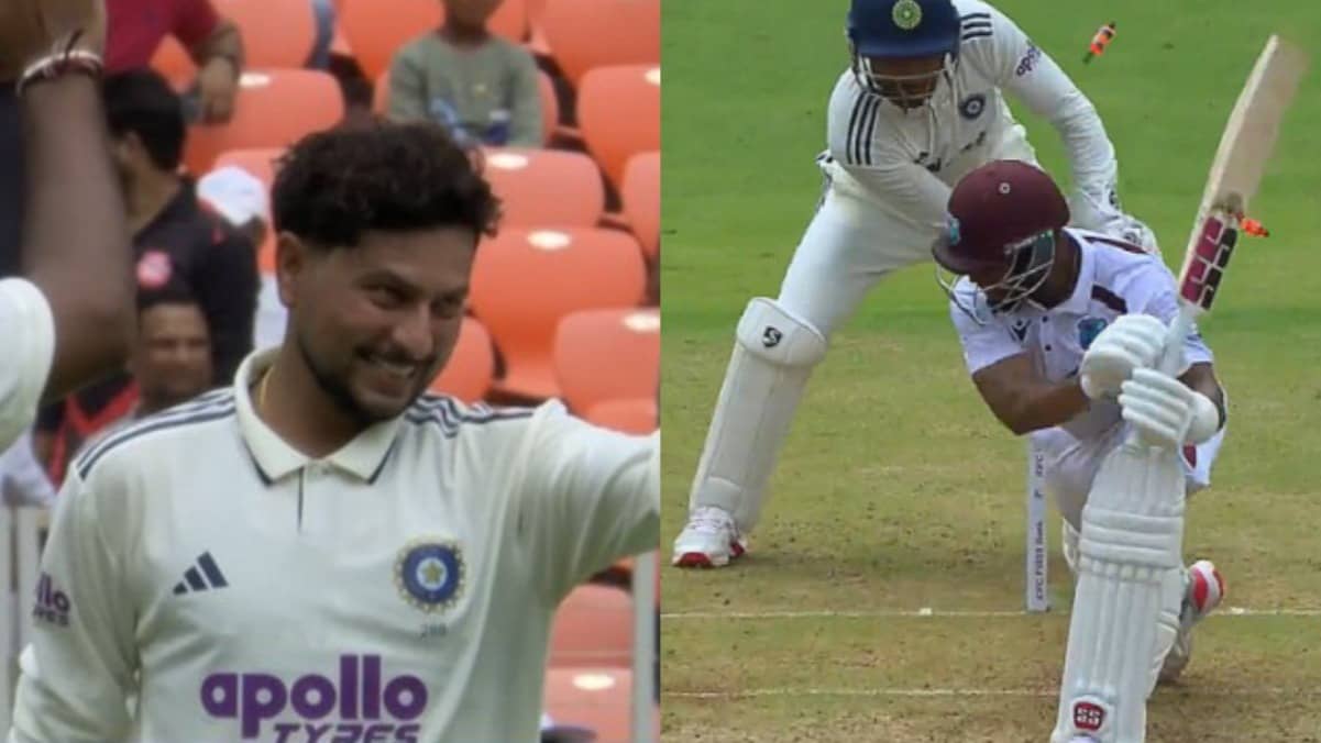 IND vs WI: Kuldeep Yadav did not take much time to make an impression with the red ball as he picked up his first wicket during the opening Test versus West Indies on Thursday. Kuldeep clean bowled Shai Hope with an absolute beauty in Ahmedabad. It was an important wicket as Hope was just looking to settle in. Kuldeep tossed it up, forced Hoe to go for the expansive drive. Hope took the bait, went for it only to miss it completely as the ball went through the gate to disturb the stumps. Kuldeep was over the moon after the wicket, and rightly so.
