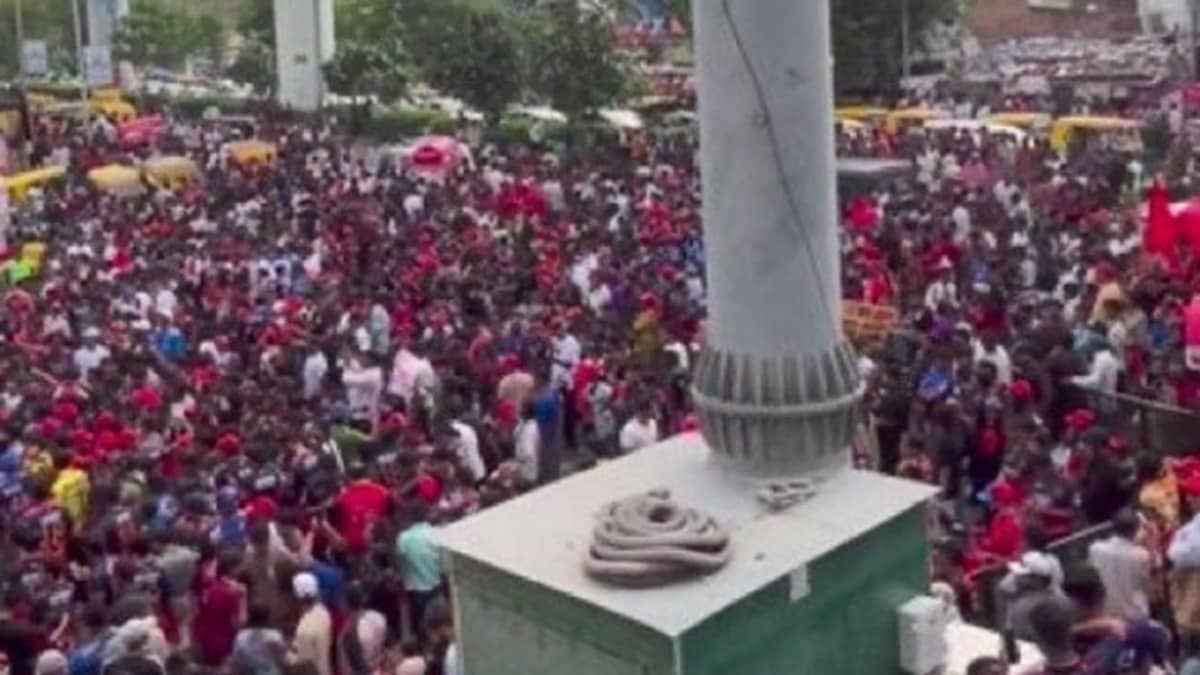 Social media is abuzz with visuals of thousands clad in red jerseys, many seen marching towards the stadium in unison.