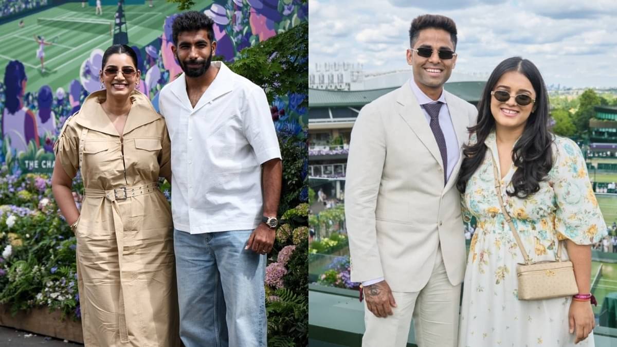 Indian cricketers have made it a ritual to grace Wimbledon in the last few years, and recently, Virat Kohli, Suryakumar Yadav and Ajinkya Rahane made their presence felt at the All England Club. Jasprit Bumrah and Suryakumar Yadav became the latest pair of cricketers to mark their appearance at the SW19. Bumrah reached the centre Court with his wife Sanjana Ganesan, while India's T20I captain Suryakumar was also seen with his spouse Devisha Shetty. Bumrah looked dapper in a white shirt and jeans while Suryakumar was in an all-white suit.
