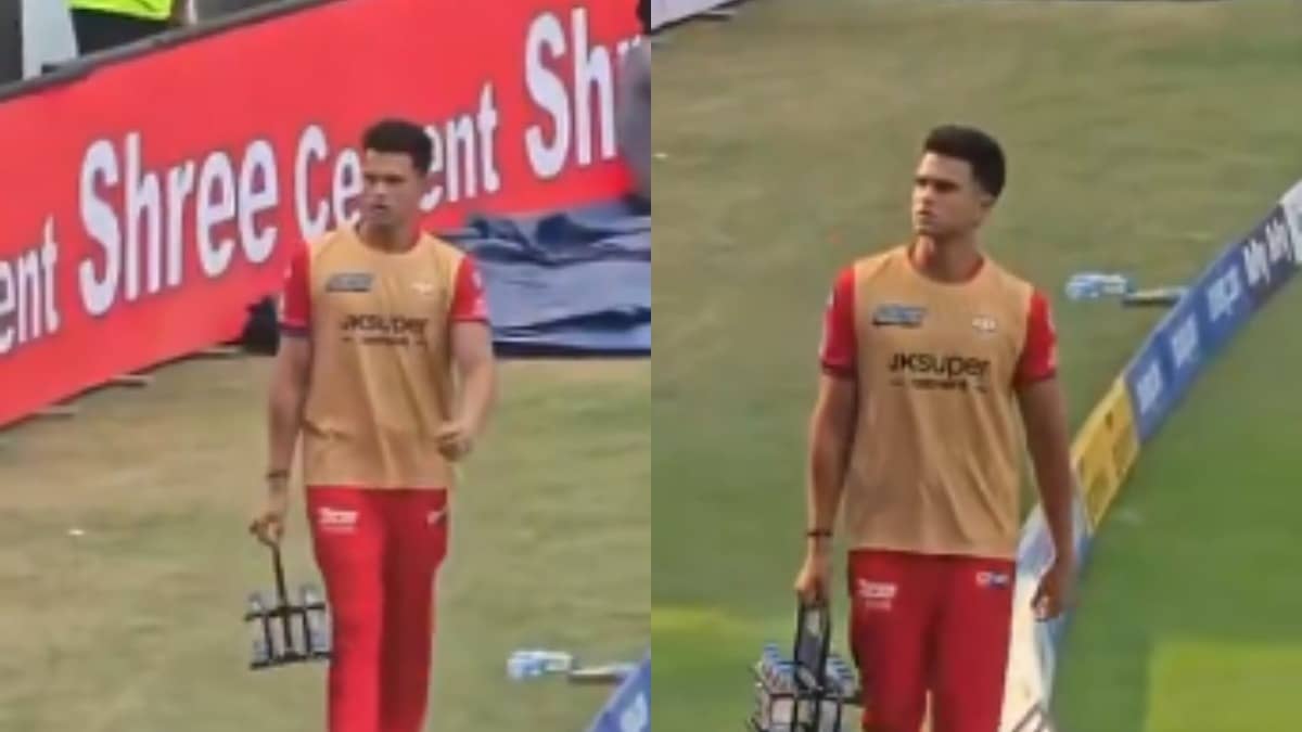 Arjun, who is part of the Lucknow Super Giants franchise, was not featuring in Sunday's game. Cameras spotted him carrying drinks near the boundary ropes while the crowd kept on chanting his name. Arjun, who could easily have opted to lead a luxurious life, chose not to and instead go through the grind and now he is winning respect for it. Despite not featuring in the Lucknow Super Giants playing XII, he was still supporting the team, carrying drinks for players without any complaints, and continuing to work hard behind the scenes. Here is the viral clip.