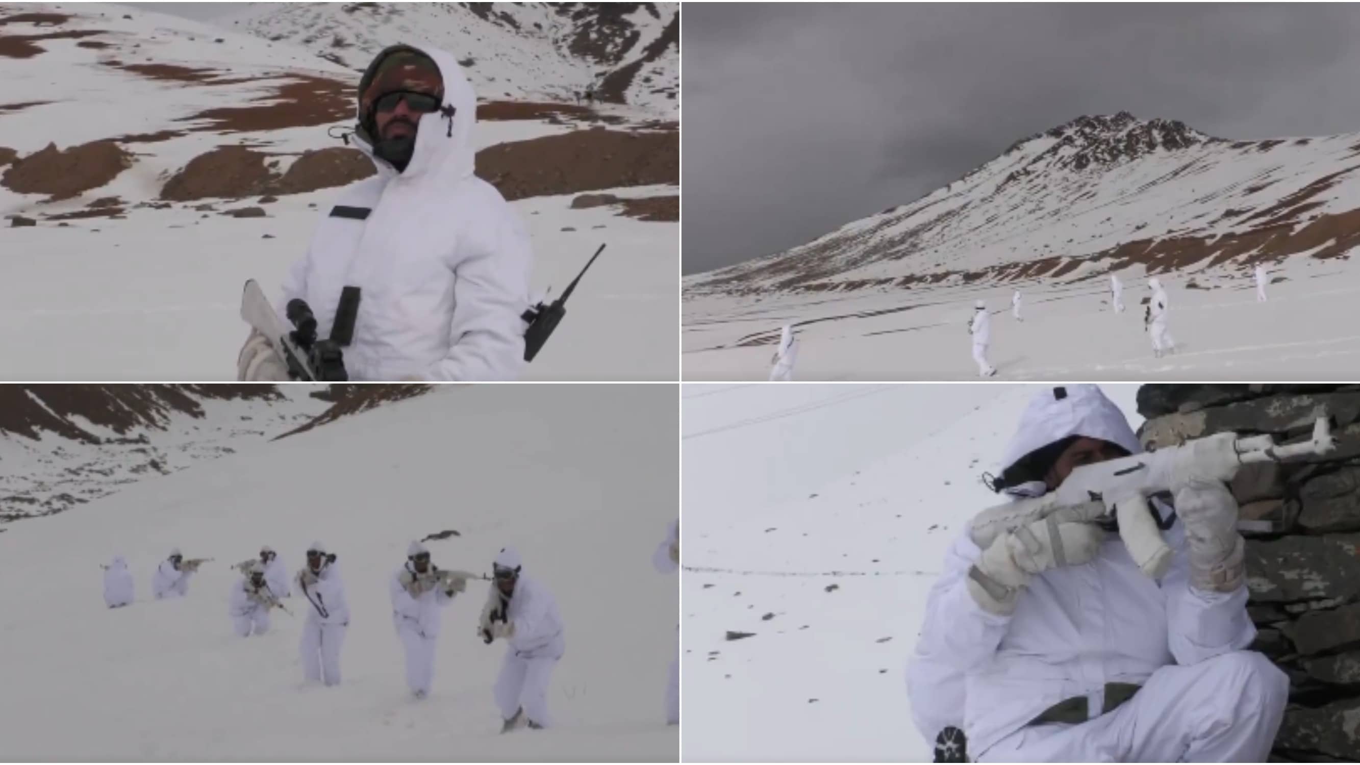 Army personnel are conducting coordinated exercises, moving through snow-covered mountains as part of a safety measure along the border. From the visuals, troops are seen equipped with specialised winter gear and are communicating extensively to monitor suspected areas.