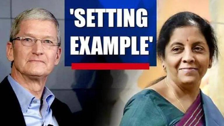 Just after the corporate tax rate cut and the Sensex hike in the country, Finance Minister Nirmala Sitharaman on Sunday urged that any move by the United States electronic giant - Apple to move some of their manufacturing to India will be a great signal to several other foreign companies to move some manufacturing from China to India. The government on Friday slashed the corporate tax rate for companies to 25.17% and even a lower rate to 17.01%, as a move to boost the economic rate.