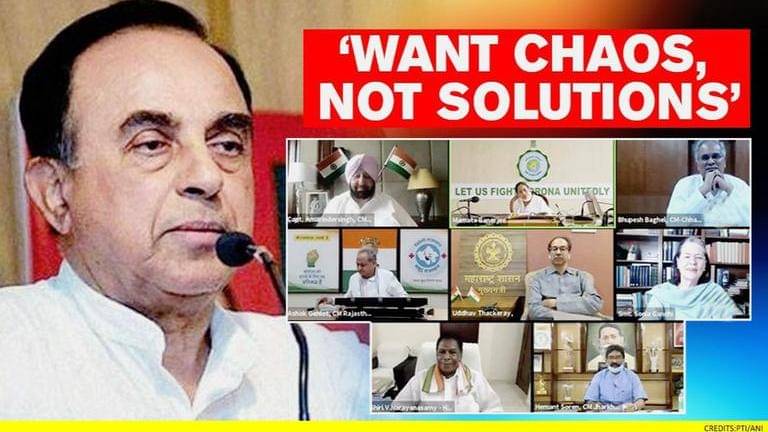 Senior BJP leader and Rajya Sabha MP Dr Subramanian Swamy on Sunday said that if the Chief Ministers do not invoke the Disaster Management Act (DMA) for the students appearing for the NEE-JEE exams then they are "not for students" but for "embarrassing" PM Modi. Further slamming them, the Rajya Sabha MP said they then "want chaos, not solutions"
