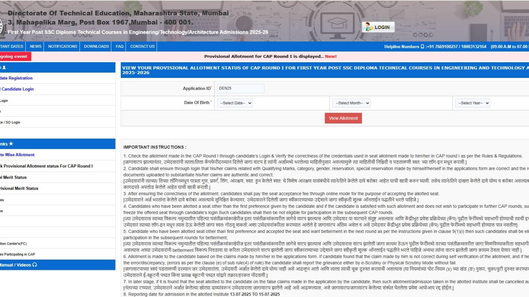 DTE Maharashtra CAP Round 1 Result 2025: How to Check