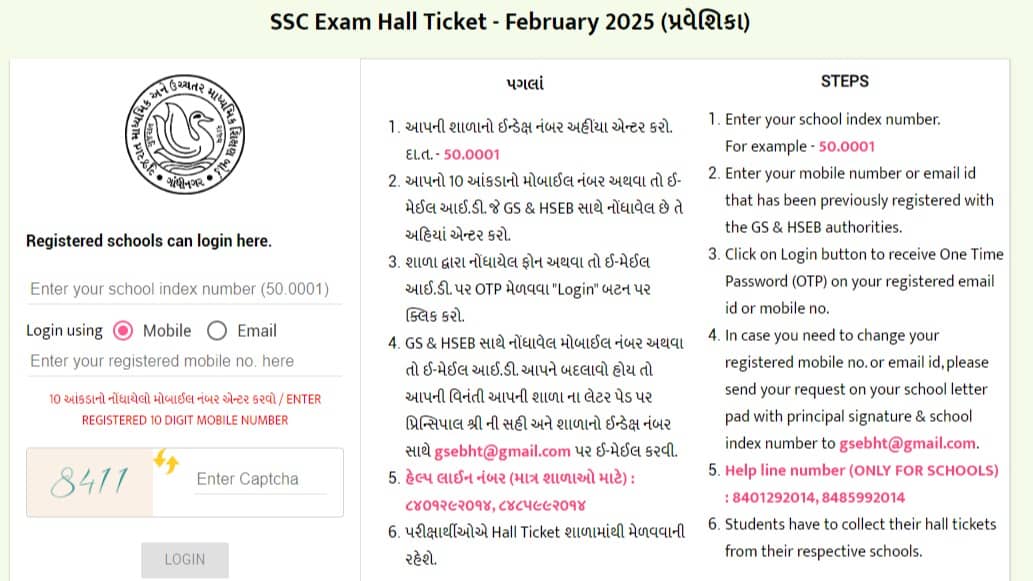 The GSEB HSC and SSC hall ticket 2025 are available for download in PDF format online. School authorities can access and download the GSEB HSC commerce hall ticket 2025 and other streams through the school login portal. Regular students will receive their hall tickets from their schools, whereas private candidates can download their admit cards directly from the portal.