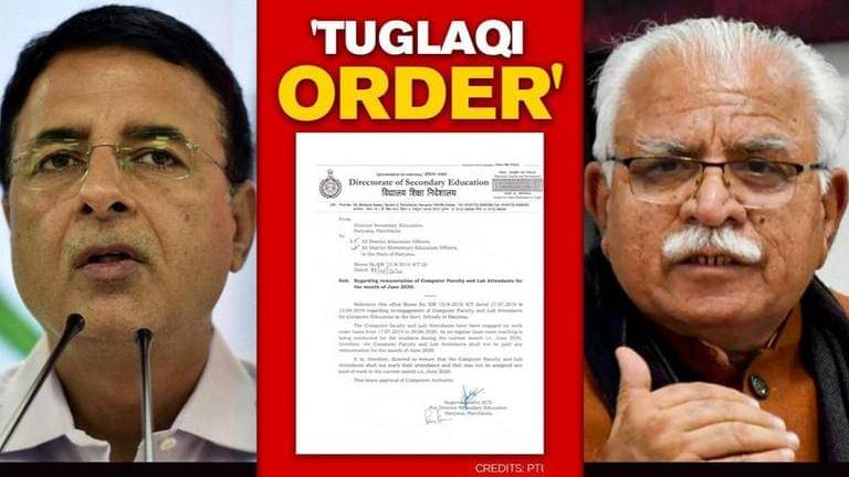 Congress leader Randeep Surjewala has targeted the Haryana state government over its announcement of not remitting salary to computer and lab assistants in government schools in Haryana for the month of June. Surjewala has called it a 'Tughlaqi decision'