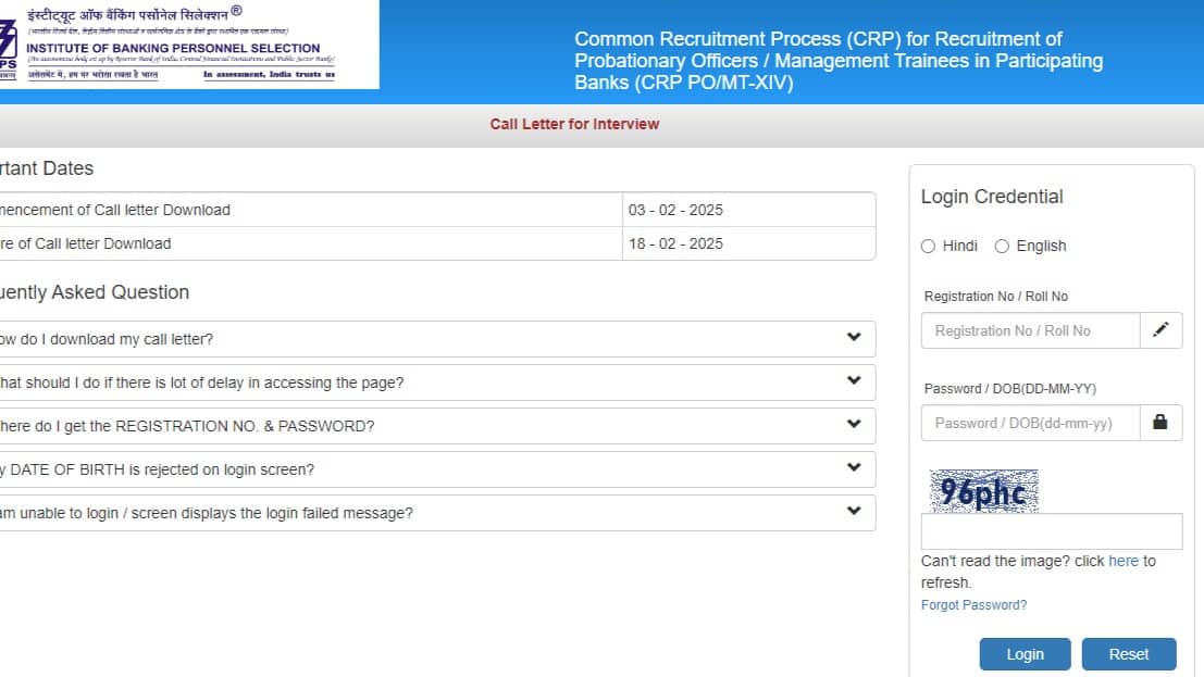 The Institute of Banking & Personnel Selection (IBPS) has issued call letters for candidates eligible to attend the interview round scheduled for February 3, 2025. To download the IBPS PO Call Letter, candidates need to enter their registration number and date of birth on the Institute of Banking & Personnel Selection website, www.ibps.in.