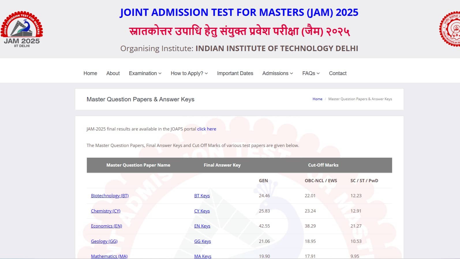 IIT JAM Final Answer Key 2025: The Indian Institute of Technology (IIT) Delhi has released the final answer key for the Joint Admission Test for Masters (JAM) 2025 today, March 19. Candidates who took the exam can download the final answer key from the official website: jam2025.iitd.ac.in.