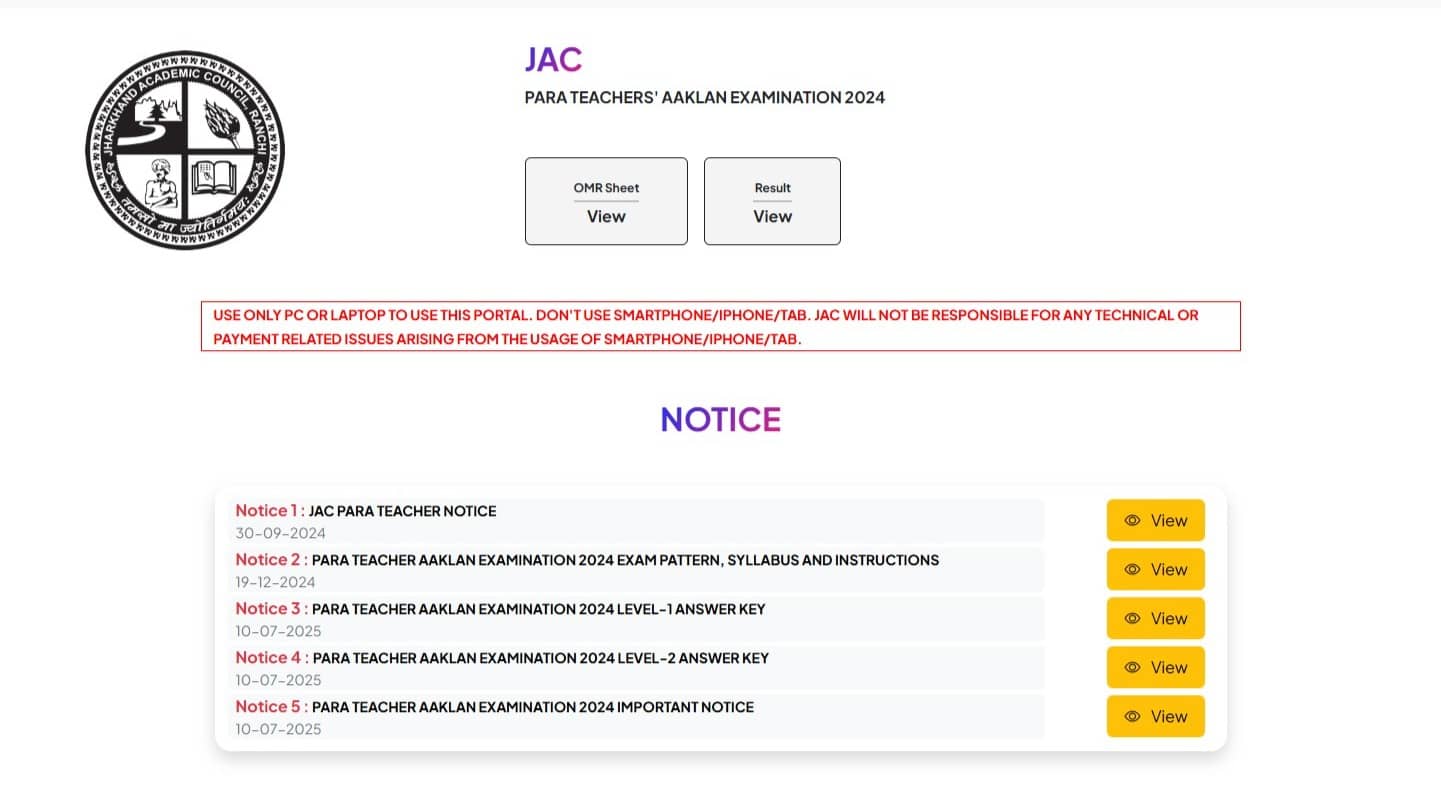 JAC Para Teacher Aaklan Result 2024: How to Check