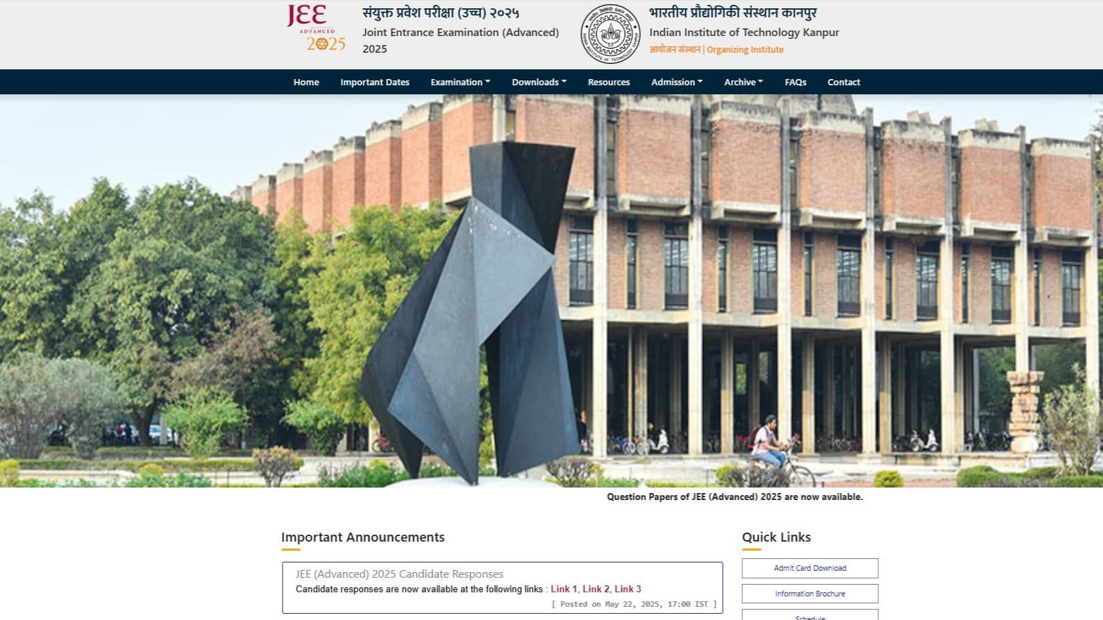 JEE Advanced 2025 Response Sheets OUT: The Indian Institute of Technology (IIT) Kanpur has published the JEE Advanced 2025 response sheets today. Students who took the exam can now view and download their individual response sheets from the official website at jeeadv.ac.in.