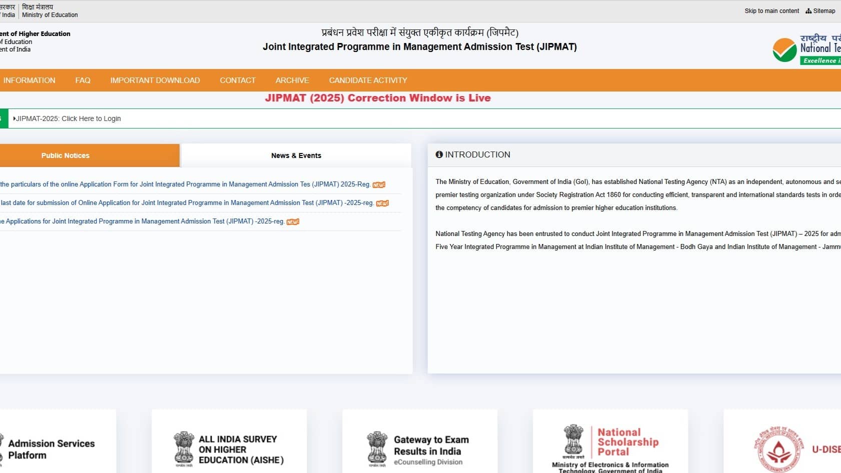 The National Testing Agency (NTA) will close the application correction window for the Joint Integrated Programme in Management Admission Test (JIPMAT) 2025 on 21st March. Candidates who have successfully registered can edit their JIPMAT 2025 application form through the official website: exams.nta.ac.in/JIPMAT.