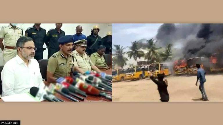 Protests against the death of a class 12 girl student of a private school in Kallakurichi on Sunday turned violent. Police personnel tightened the security outside the school. The school was the epicentre of violence and vandalism. The protestors pushed down barricades and stormed the premises of a school and set buses on fire. A police bus was also set ablaze. Several agitators also managed to reach the school terrace, vandalised the name board, and held banners seeking justice for the dead girl.