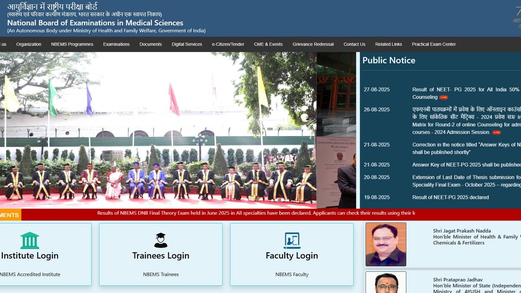 NEET PG Result 2025: NBEMS Releases Merit List For 50% AIQ Seats at natboard.edu.in, Check Details