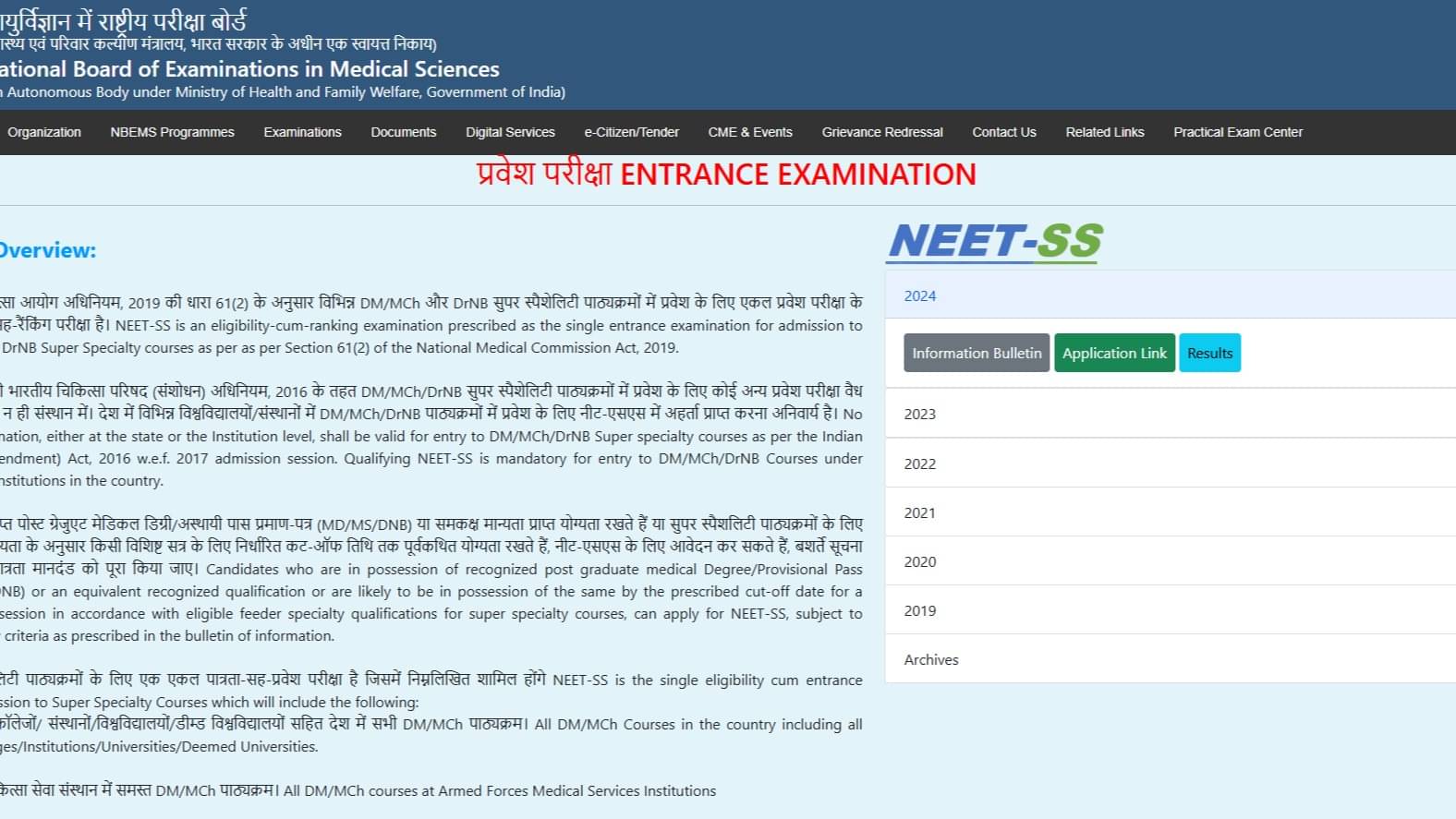 Step 5: Click on the NEET SS 2024 Admit Card link.
