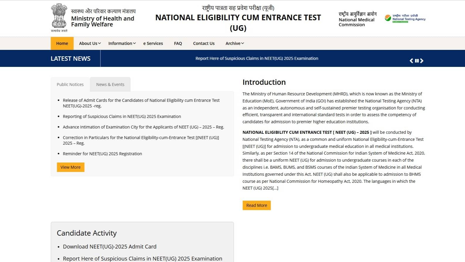 Step 1: Go to the official NTA NEET 2025 website at neet.nta.nic.in.