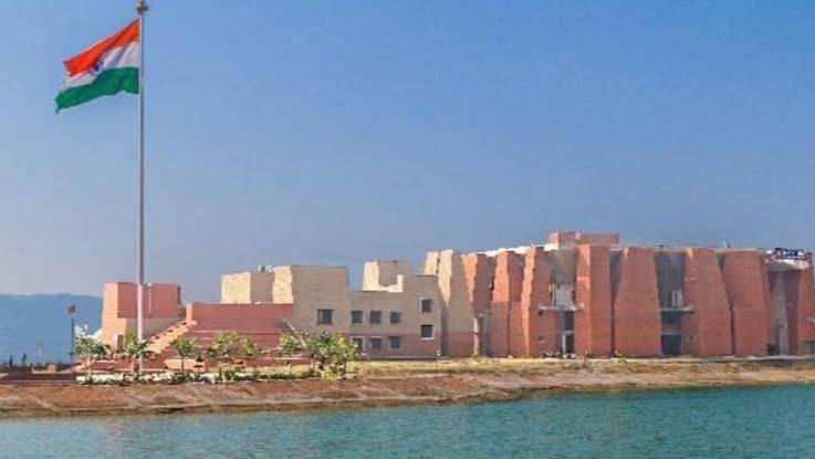 Spanning 455 acres with water bodies covering 100 acres, the campus combines state-of-the-art infrastructure with traditional architectural elements. It is designed as a Net Zero campus, emphasizing sustainable development.