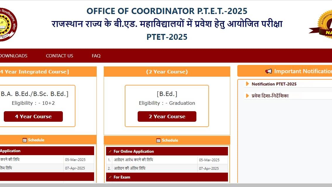 Rajasthan PTET Registration 2025: The registration process for the Rajasthan Pre-Teacher Education Test (PTET) 2025 has commenced today, March 5, 2025. Candidates interested in pursuing B.Ed, B.A B.Ed, or B.Sc B.Ed courses can apply online through the official website ptetvmoukota2025.in.