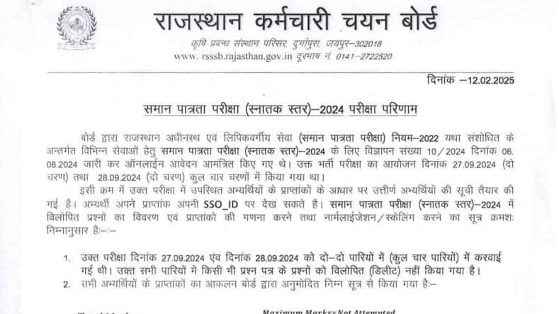 Rajasthan CET Graduation Level Result 2024 PDF, Here's How to Download