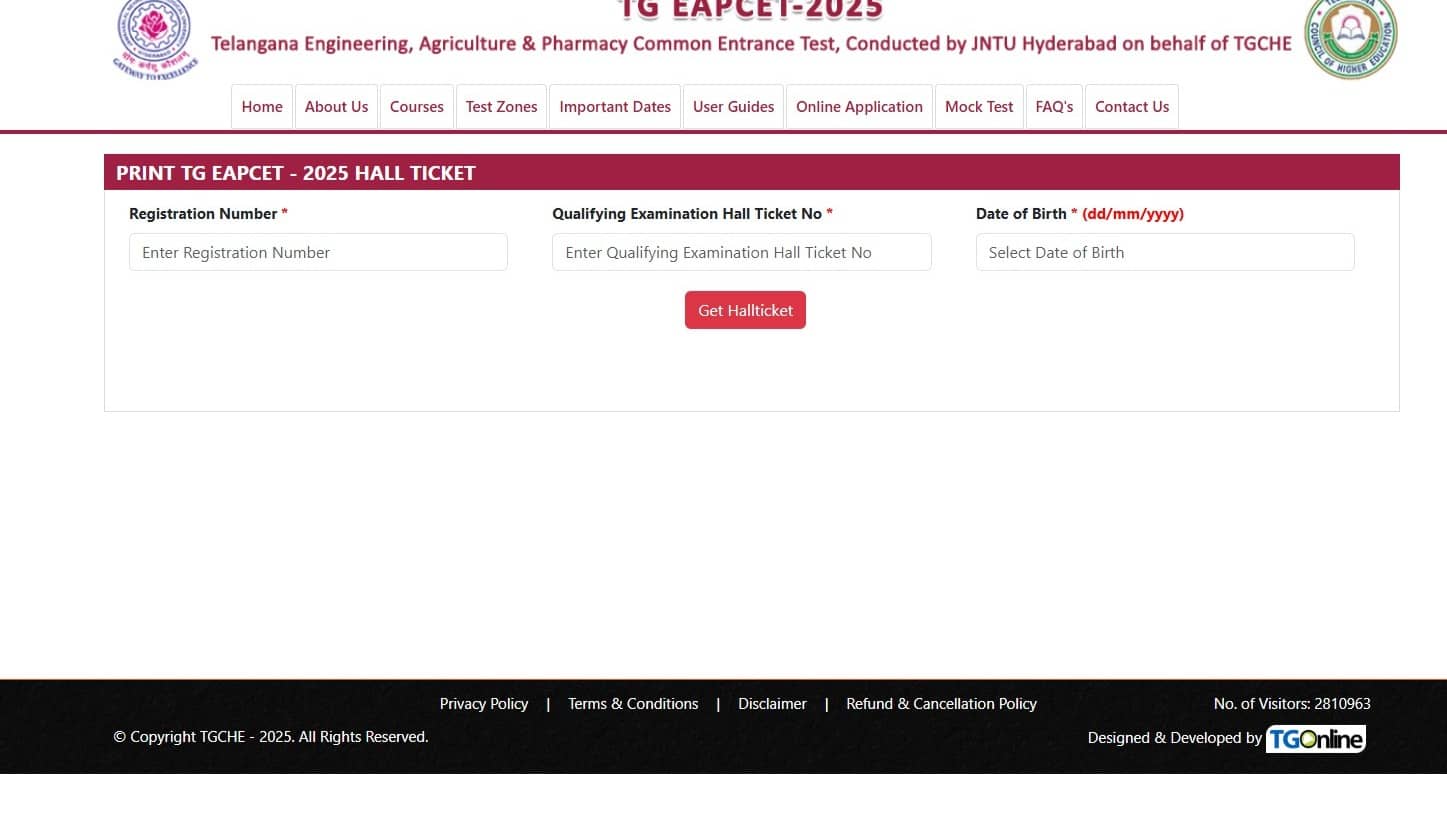 Step 2: On the homepage, click on the link that says, "TS EAMCET Hall Ticket 2025".
