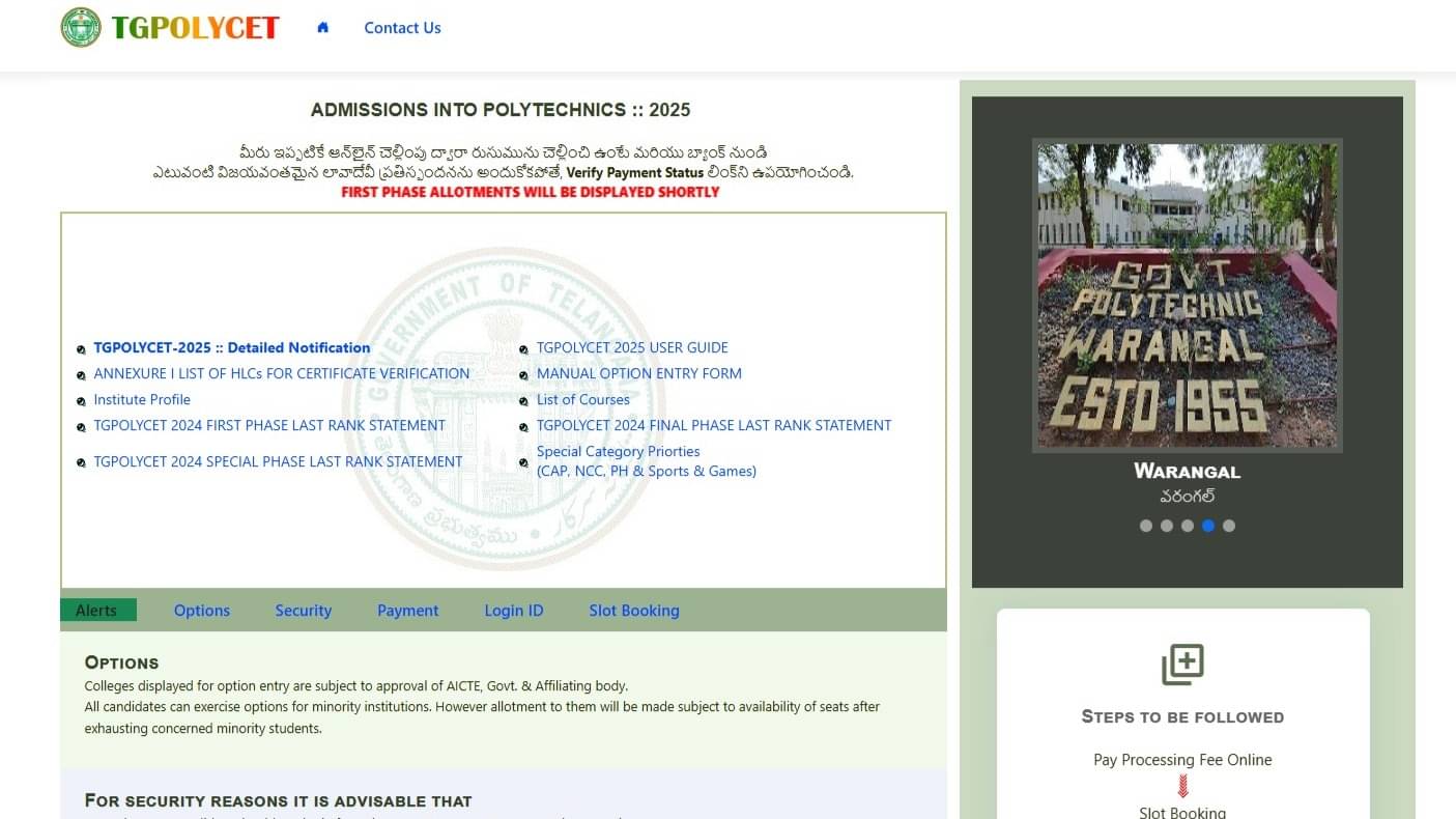 Step 1: Go to the official website at tgpolycet.nic.in.