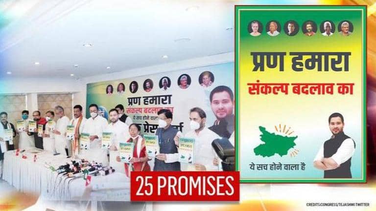 The Chief Ministerial face of Mahagathbandhan in Bihar, Tejashwi Yadav released the joint manifesto along with Congress and three left parties. Read here