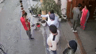 In the video, Shokeen and others are seen standing outside his office when a car swerves to avoid hitting an oncoming bike and crashes into the office.