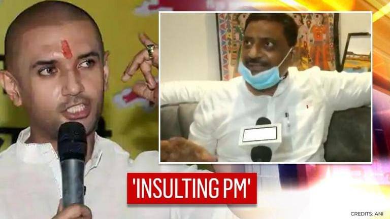 In response to JDU leader Sanjay Jha calling him 'Jamoora', LJP chief Chirag Paswan has said that it is an insult to Prime Minister Modi, as he only follows the PM. Hitting out at Chirag Paswan for his 'will jail Nitish' remark, JDU leader Sanjay Jha had earlier called him a 'jamoora' (sidekick), and claimed that he will fail in politics, in the same way like he failed in Bollywood. Hinting at former JDU vice president Prashant Kishor's role in Chirag's defiance against the JDU, Jha said that he is dancing to the tunes of "someone". He said that it is easy to interpret who is the 'Madaari'. Chirag Paswan had claimed that BJP and LJP will form the government together and he will jail Nitish Kumar for scams in 7 nischay and other schemes.