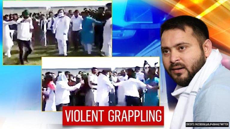 BJP has shared a video of Mahagathbandhan's CM candidate Tejashwi Yadav grappling violently with a purported supporter who came forward to click a selfie