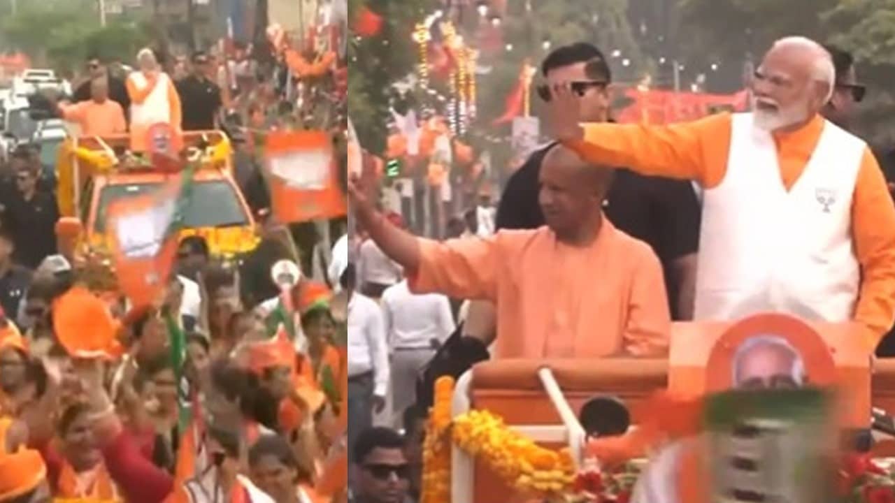 New Delhi: Prime Minister Narendra Modi electrified the streets of Varanasi with a grand roadshow, commencing from Lanka Chowk on Monday. Amidst an enthusiastic crowd, Modi, accompanied by Uttar Pradesh Chief Minister Yogi Adityanath, embarked on the vibrant procession. As the sitting MP and candidate from Varanasi, Modi's presence resonated deeply with the locals, who thronged the streets to catch a glimpse of their leader.