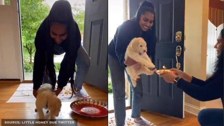 A puppy video recently went viral on Twitter wherein a pooch is welcomed home for the first time in a 'Kabhie Khushi Kabhi Gham' style by its family; watch