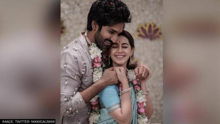 Popular Tamil star Aadhi Pinisetty made his engagement to his longtime girlfriend and actor Nikki Galrani official on social media on Saturday. This comes after several reports surfacing claiming that the couple's engagement took place in an intimate ceremony with close friends and family. Both the actors' fans and followers rushed to the comments section and sent their best wishes as they announced their engagement to the world.