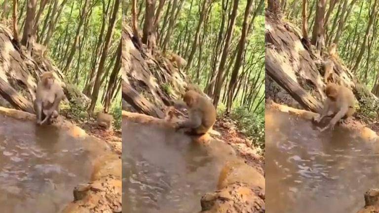 An adorable video of a baby monkey taking bath, shared by IFS Officer Sunanta Nanda, sway the hearts of the netizens; Watch