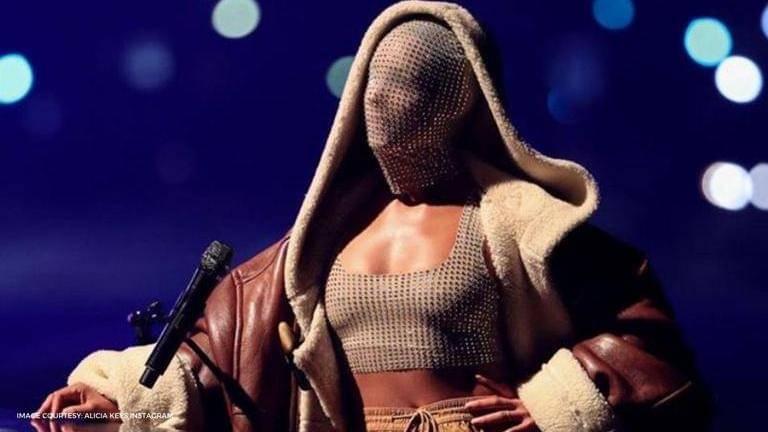 Alicia Keys slayed the MTV EMA 2020 red carpet look with ease by styling a blingy facemask with an urban cool streetwear. Have a look at the details here.
