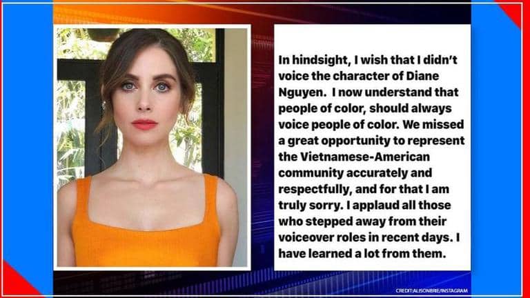 Following BoJack Horseman creator Raphael Bob-Waksberg's apology over the 'racist' portrayal of Diane Nguyen, Hollywood actor Alison Brie has expressed her regret on voicing the much-loved Vietnamese-American character.