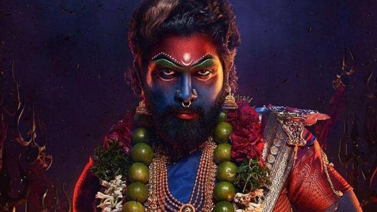In a poster released on April 7, Allu Arjun was seen covered in blue paint. He also wore a red saree and was heavily adorned with jewellery. The actor wore garlands as well, one of which was made out of lime. In the poster, Allu Arjun also held a gun.