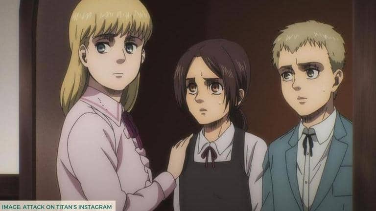 But it is still hard to say if this alleged leak is real or not. The alleged leak showcases two characters from the series walking towards a tomb with their baby. The faces of both the characters and the baby are not shown. Moreover, it seems like the three are walking towards Eren’s tomb present under a tree. Take a look at this tweet below.